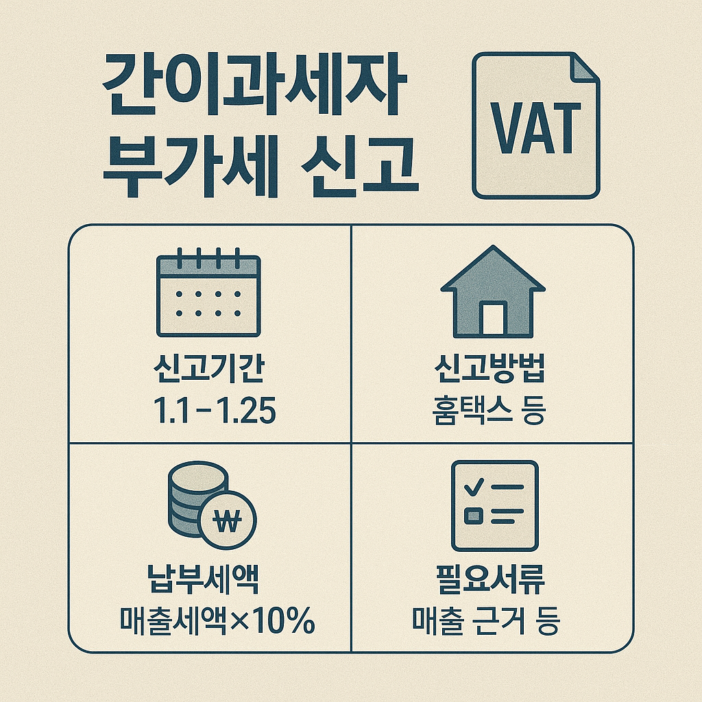 이번 글에서는 2025년 기준 간이과세자의 부가세 신고 기간과 홈택스를 통한 신고 절차를 실무 중심으로 정리했습니다.