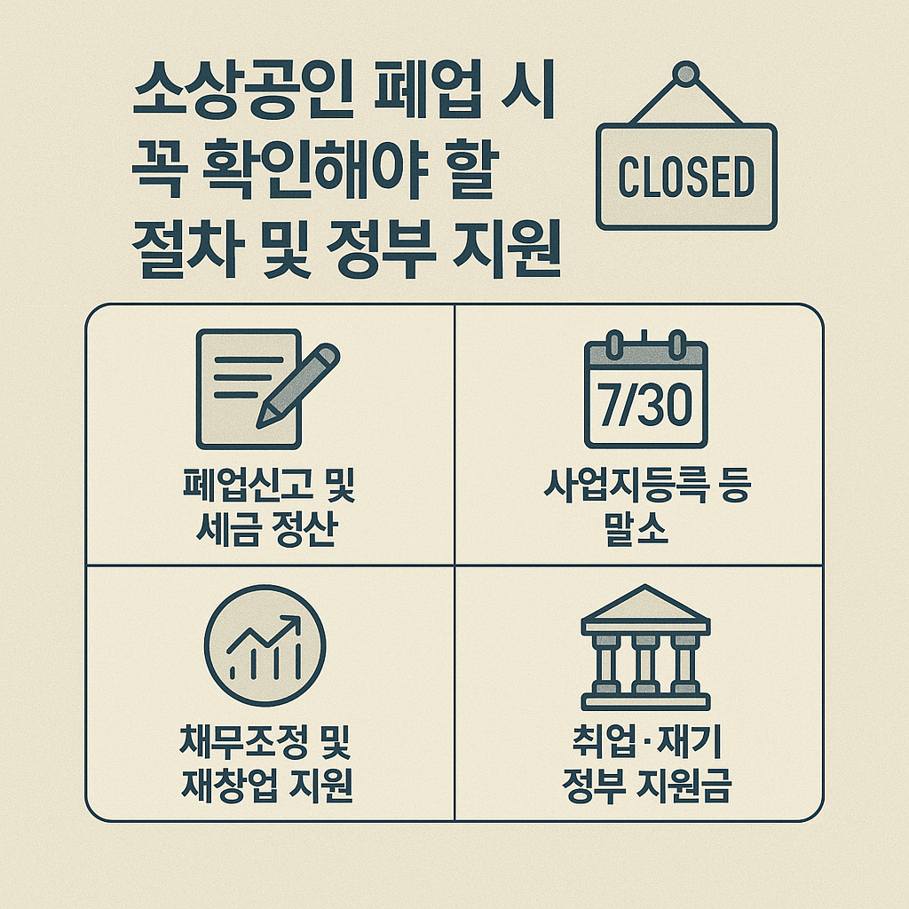 폐업은 실패가 아니라 다음 시작을 위한 정리 과정입니다. 감정적인 결정이 아닌, 제도적 절차를 따라 준비하면 재창업의 가능성도 넓어집니다.